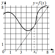 На рисунке изображены график функцииy=f(x)и касательная к немув точке с абсциссойx0. Найдите значение производной функцииf(x)в точкеx0.; ;