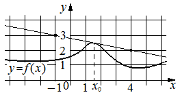 На рисунке изображены график функцииy=fxи касательная к немув точке с абсциссойx0.Найдите значение производной функцииfxв точкеx0.; ;