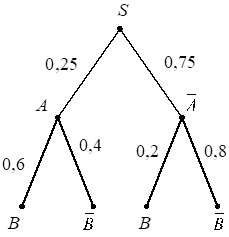 На рисунке изображено дерево случайного опыта. Найдите вероятность события.;
