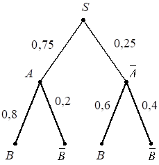 На рисунке изображено дерево случайного опыта. Найдите вероятность события.;