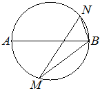 | На окружности по разные стороны от диаметра взяты точки и . Известно, что . Найдите угол . Ответ дайте в градусах. |