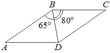 | Диагональ BD параллелограмма ABCD образует с его сторонами углы, равные и . Найдите меньший угол этого параллелограмма. Ответ дайте в градусах. |