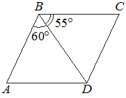 | Диагональ BD параллелограмма ABCD образует с его сторонами углы, равные и . Найдите меньший угол этого параллелограмма. Ответ дайте в градусах. |