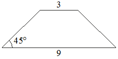 | В равнобедренной трапеции основания равны 3 и 9, а один из углов между боковой стороной и основанием равен . Найдите площадь этой трапеции. |