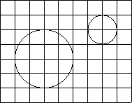 ; На клетчатой бумаге изображены два круга. Во сколько раз площадь большего круга больше площади меньшего?