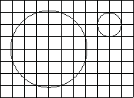 ; На клетчатой бумаге изображены два круга. Во сколько раз площадь большего круга больше площади меньшего?