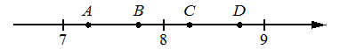 На координатной прямой отмечены точки , , , . Одна из них соответствует числу . Какая это точка?