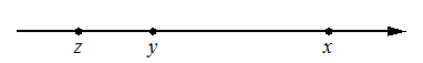 На координатной прямой отмечены числаx,yиz.; ; Какая из разностейz−x,y−z,x−yотрицательна?; z−x; y−z; x−y; ни одна из них